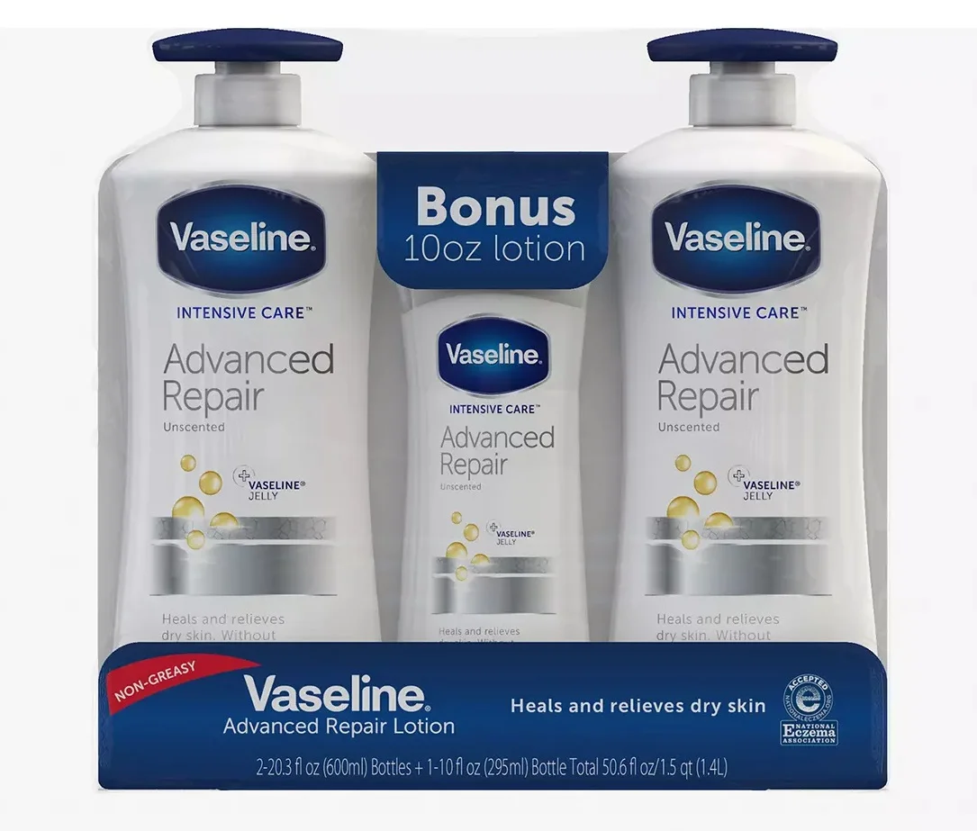 Conçue pour les peaux qui ont besoin d’un véritable soin de secours, la lotion Vaseline Advanced Repair va au-delà d’une simple hydratation. Sa formule cliniquement prouvée pénètre en profondeur pour réparer la barrière cutanée et restaurer l’éclat des peaux les plus assoiffées.
